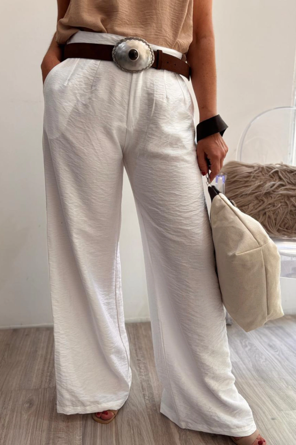 Diseño: Corte ancho y fluido que aporta un look relajado y moderno, perfecto para combinar con blusas ajustadas o tops cortos. Presenta botón adelante y bolsillos. Elástico en cintura en la parte de atrás.